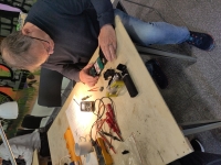 Draußen wird derweil ein Nabendynamo vermessen. Ergebnis: Der ist kaputt. Aber da noch Garantie auf dem Fahrrad ist, reparieren wir es nicht.